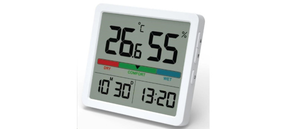 - Velký displej: Jasný a snadno čitelný LCD displej zobrazuje teplotu, vlhkost, čas a datum současně.