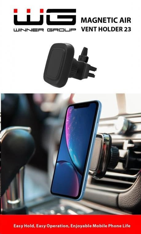 Stylový magnetický držák na mobily je vybavený magnetickým upínáním, které spolehlivě udrží váš telefon na svém místě. Určený je pro instalaci do mřížky ventilace pomocí klipu. Součástí balení jsou magnetické destičky, které je potřebné vložit pod kryt telefonu anebo mezi tělo telefonu a pouzdro. Držák vyniká minimalistickým provedením, takže vám nebude v autě nijak překážet.. Winner Group-WG, s.r.o, Žihla 997 739 91 Jablunkov Česká republika, mailto:info@winner-mobile.com