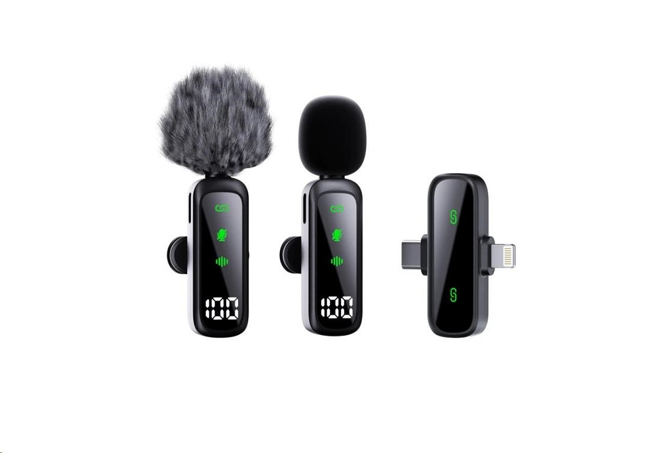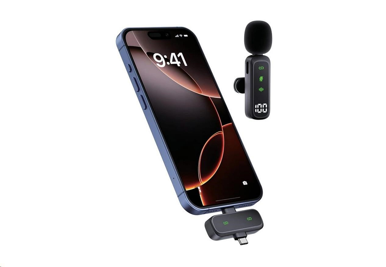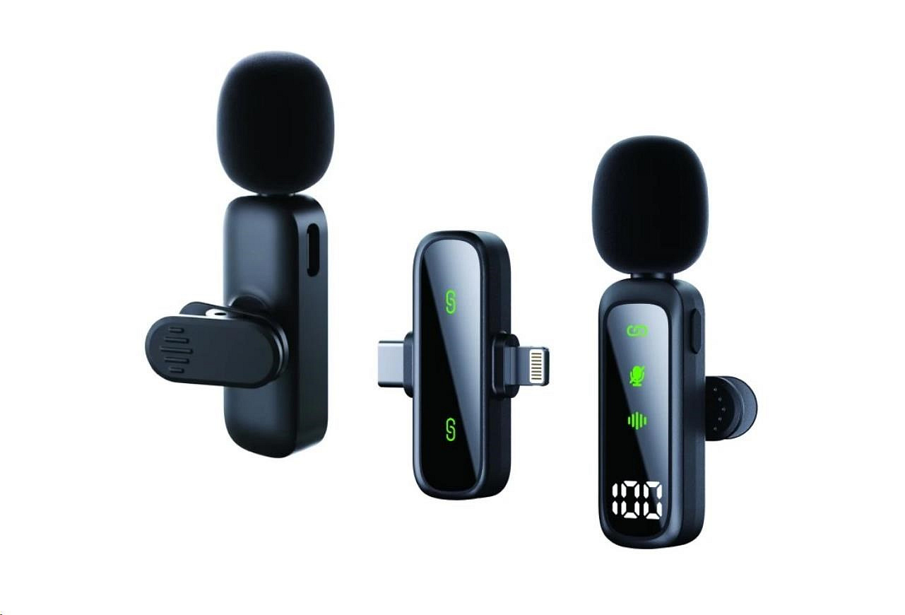 Hlavní výhody Plug & play – připoj a nahrávej (bez párovacích složitostí). 2 klopové mikrofony – pro dialogy, interview nebo natáčení ve dvou. Noise Reduction – adaptivní potlačení okolního hluku, čistý timbre. Dosah až 20 m – stabilní přenos pro vlogy i natáčení v terénu. Vysoká citlivost – zachytí detailní hlas i v rušnějším prostředí. Široká kompatibilita – přijímač s rozhraním Lightning / USB-C (dle zařízení). Technické specifikace Výdrž baterie (každý mikrofon): 4–5 hodin Kapacita baterie (každý mikrofon): 70 mAh (Li-Pol) Vstupní napětí: 5 V Rozhraní přijímače: Type-C, Lightning Vstupní port pro mikrofon: USB-C Odstup signál/šum: 64 dB s adaptivním potlačením šumu Citlivost: -39 ± 3 dB Frekvenční rozsah: 20 Hz – 20 kHz Přenosová vzdálenost: 20 metrů Materiál: ABS Obsah balení: 2× bezdrátový klopový mikrofon Přijímač (Lightning / Type-C) Furry windshield (protivětrný návlek) – součást balení Uživatelská příručka. Winner Group-WG, s.r.o, Žihla 997 739 91 Jablunkov Česká republika, mailto:info@winner-mobile.com