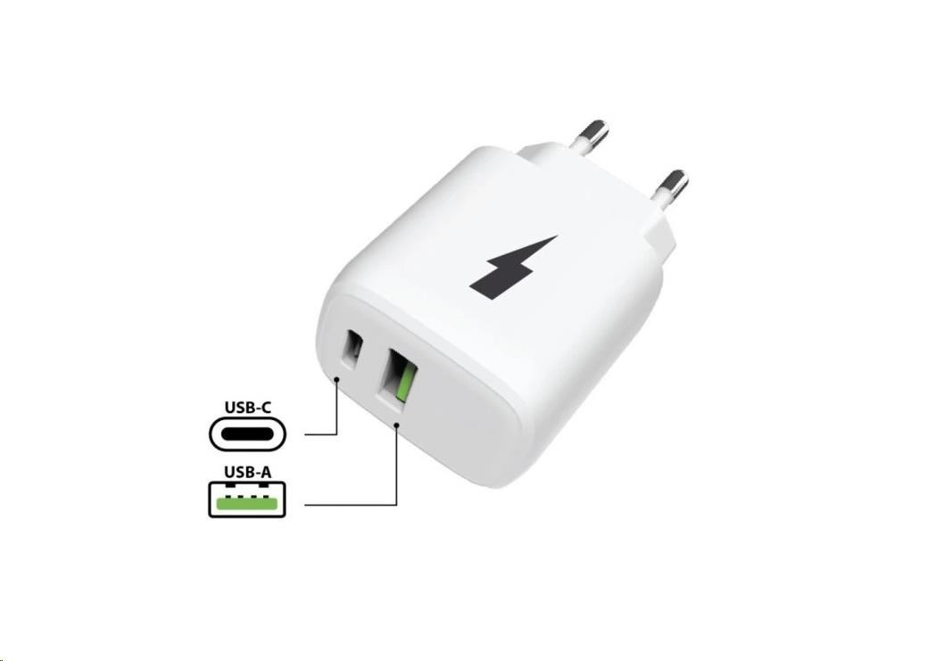 Díky kombinaci USB-C a USB-A můžete nabíjet dvě zařízení současně, a to s optimálním výkonem.