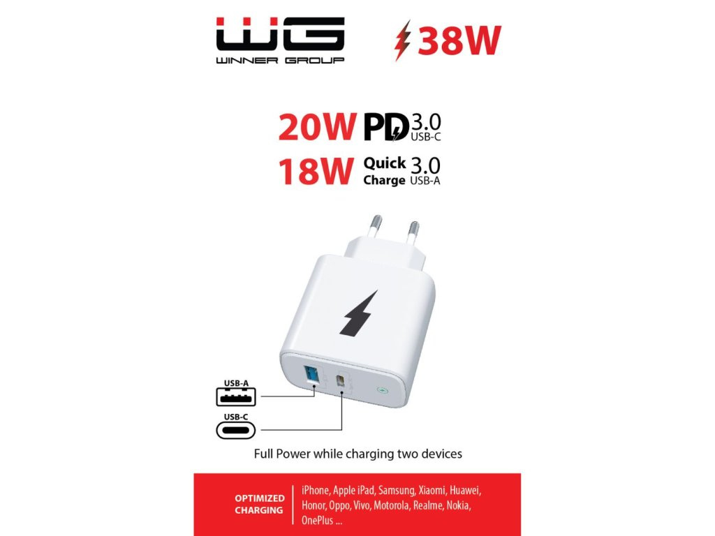 Síťová nabíječka se dvěma porty je ideálním řešením pro rychlé a efektivní nabíjení více zařízení současně. Tato nabíječka nabízí celkový výkon až 38W.