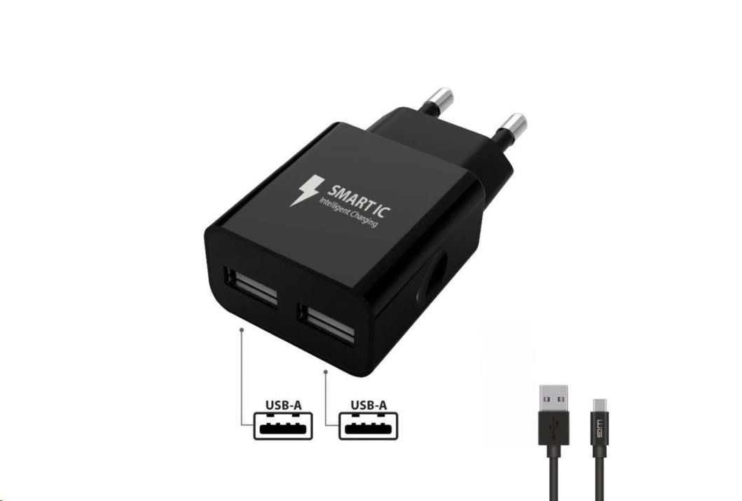 Tato síťová nabíječka je ideálním řešením pro nabíjení dvou zařízení současně. S výkonem 12W poskytuje rychlé a efektivní nabíjení pro chytré telefony, tablety a další elektroniku. Její elegantní bílý design se hodí do každého prostředí, ať už doma, v kanceláři nebo na cestách.