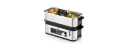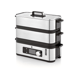 Parní hrnec WMF KITCHENminis® vyrobený z nerezové oceli Cromargan® s kvalitním skleněným víkem plní, co slíbil. Má kompaktní design, je vhodný na zdravé vaření, neobsahuje bisfenol A a není odkázaný na vařič. Jedná se o nejmenší systém na vaření z nerezové oceli Cromargan® o velikosti jen 14,4 x 28,4 cm s výkonem 900 wattů, který umožňuje připravovat zároveň maso, ryby, zeleninu a přílohy na dvou plochách. Dokonalé vaření: díky technologii WMF Easy Steaming se dvěma samostatnými plochami na přípravu pokrmů, které lze samostatně nastavit, můžete připravovat vše najednou. Samotný proces vaření však začíná později podle toho, jak ho nastavíte.