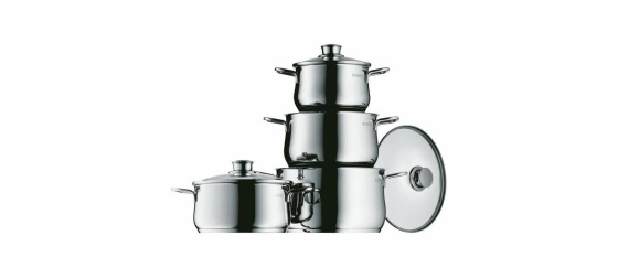 Hrnce řady Diadem Plus s vypouklým tvarem a průhlednými skleněnými poklicemi jsou ideální pro energeticky úsporné vaření a stylové servírování. Nádobí vyrobené z ušlechtilé nerezové oceli Cromargan® vyniká mimořádnou odolností proti poškrábání, je chuťově neutrální a velmi snadno se udržuje. Díky univerzálnímu dnu TransTherm® je sada vhodná pro všechny typy varných desek včetně indukce, přičemž zajišťuje rovnoměrnou distribuci tepla. Elegantní design s oblými tvary doplňují ergonomické rukojeti a široký odlévací okraj, který zaručuje přesné vylévání obsahu bez nechtěného kapání.