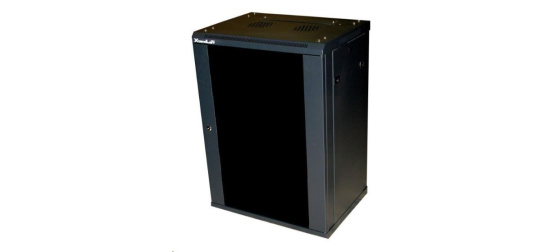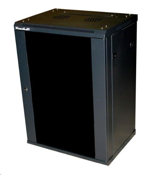 Popis XtendLan 19" nástěnný rozvaděč 12U 600x450, nosnost 60 kg, skleněné kouřové dveře, rozložený, černý