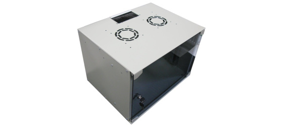 Univerzální jednodílný rozvaděč určený pro montáž na zeď (snadné připevnění - na hmoždinky). Vyroben je z válcované oceli, nosné části jsou z oceli tloušťky 1,5 mm (ostatní z 1,2 mm ocelového plechu). Konstrukce dovoluje statickou zátěž 35 kg. Přední dveře jsou skleněné, uzamykatelné. Boční panely nejsou odnímatelné. Dodává se s montážní sadou. Provedení: dveře - bezpečnostní sklo, zaměnitelný směr otevírání zádní kryt - plný boční kryt - plný horní kryt - perforovaný, s pozicemi pro dva ventilátory