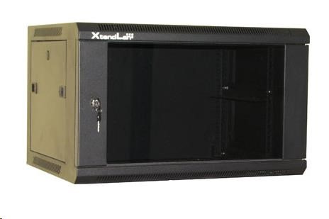 Popis XtendLan 19" nástěnný rozvaděč 9U 600x450, nosnost 60 kg, skleněné kouřové dveře, svařovaný, černý