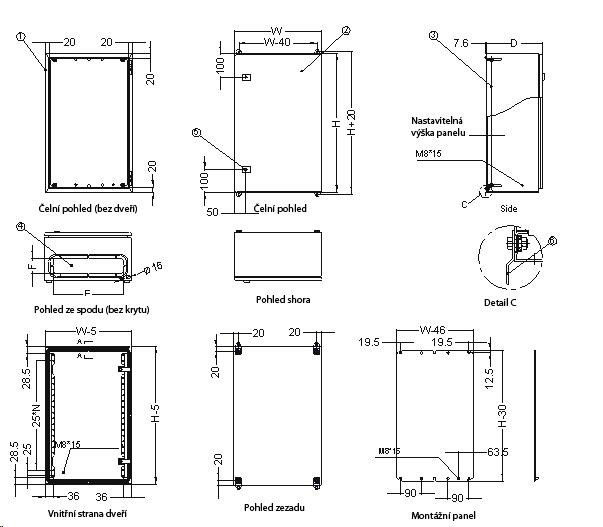 Univerzální rozvaděč, IP66, ocelový, šedý. Třívrstvá povrchová úprava (fosfátování, máčení v základním laku, práškový lak), zaměnitelné dveře, pevná konstrukce. Odnímatelný kryt kabelového průchodu. Rozvaděč je vyroben z válcované oceli o tloušťce 1,5 mm. Standardy: IEC60529, EN60529/10.91, GB4208-93 Provedení: dveře - plné, otevíratelné o 110 stupňů, montáž pravá nebo levá (uživatelsky zaměnitelné otevírání) zádní kryt - plný boční kryt - plný horní kryt - plný montážní deska: