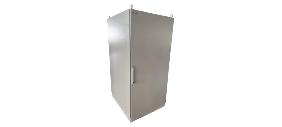 Rozvaděč pro instalaci datových a telekomunikačních zařízení, ventilace s termostatem, podstavec, šedý.