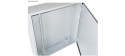 Venkovní nástěnný rozvaděč vyrobený z válcované oceli o tloušťce 1,5 mm.Třívrstvá povrchová úprava. Provedení: dveře - plné, otevíratelné o 110°, zaměnitelný směr otevírání, těsnění z pěnového polyuretanu zádní kryt - plný boční kryt - plný horní kryt - plný