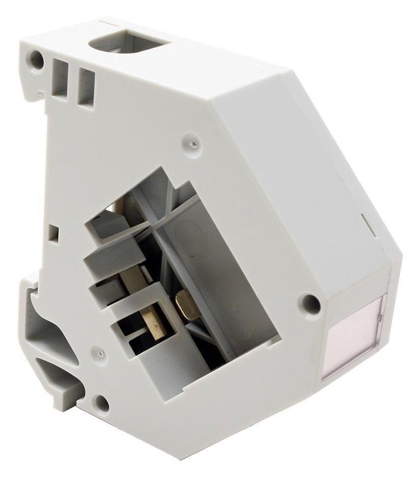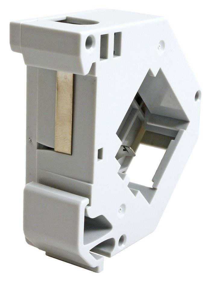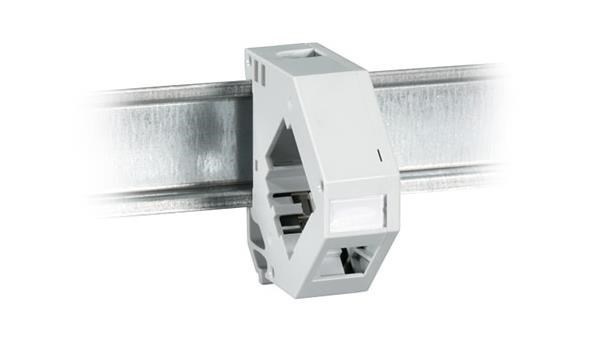 Plastový držák pro 1 keystone na DIN lištu. Integrovaný kovový pásek zajišťuje uzemnění keystone modulu. Štítek pro popis (vyjímá se po sejmutí bočního krytu)..XtendLan, Schorer 1 8622 SW Echt, Nizozemsko, sales@xtendlan.cz