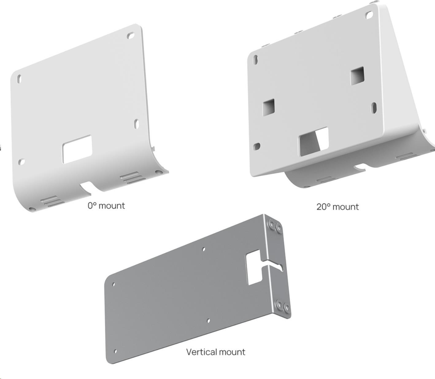 Montážní sada RoomPanel Plus jsou volitelné nástěnné držáky pro Room Panel Plus, které umožňují montáž RoomPanel Plus pod úhlem 0° nebo 20° na různé povrchy. RoomPanel Plus lze také namontovat na skleněnou stranu upevněním k rámu dveří.