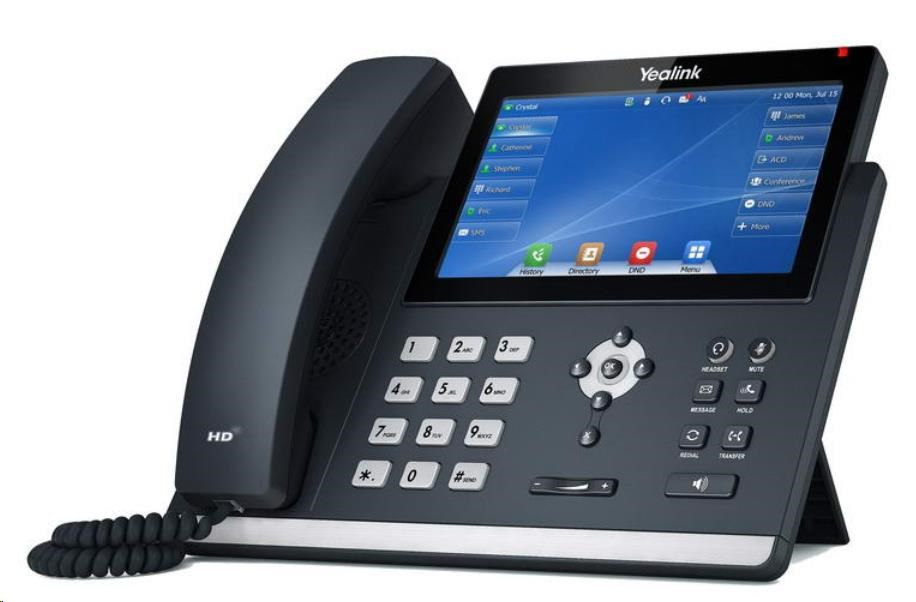 Yealik T43U je vybaven 7" dotykovou barevnou obrazovkou s rozlišením 800 x 480 pixelů. Atraktivní čistý design s kovovou lištou sluší každé moderní kanceláři. Telefon Yealink SIP-T48U disponuje 16 SIP účty a dvěma 1 Gbs ethernetovými porty s podporou PoE . Nabízí 29 programovatelných dotykových DSS kláves, kterým lze přiřadit mnoho různých funkcí. Telefon disponuje také barevnou indikací, barevně posvětlenými tlačítky (hlasitý odposlech, sluchátka, ztlumený mikrofon). Podporuje také až 3-cestnou skupinovou konferenci a díky podpoře EHS k němu snadno připojíte bezdrátová sluchátka.