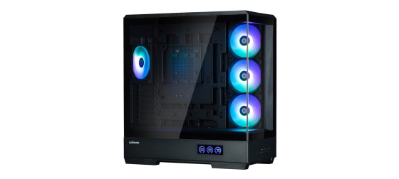 Dvě bezrámová přední a boční tvrzená skla zobrazující jedinečnou sestavu počítače. Vestavěná obrazovka zobrazuje teplotu CPU, teplotu GPU a reálný čas.