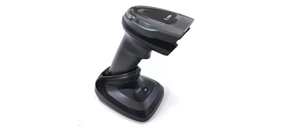 Bluetooth scanner, industry, 2D, imager (standard range), protection class: IP42, incl.: cable (USB, straight, 2 m), charging/transmitter cradle (presentation), colour: black.