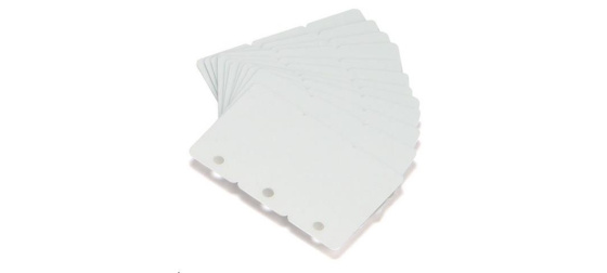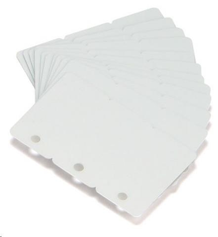 Plasic cards, pacck of 500, 30 mil, 30 mil, 3-up breakaway key tags.
