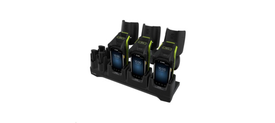 Charging station, charges 3 units and 4 spare batteries, order separately: Power supply unit, DC pow