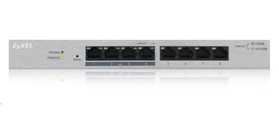 Zyxel GS1200-8HP 8-port Desktop Gigabit Web Smart switch, 4x PoE 802.3at, PoE budget 60W, fanless