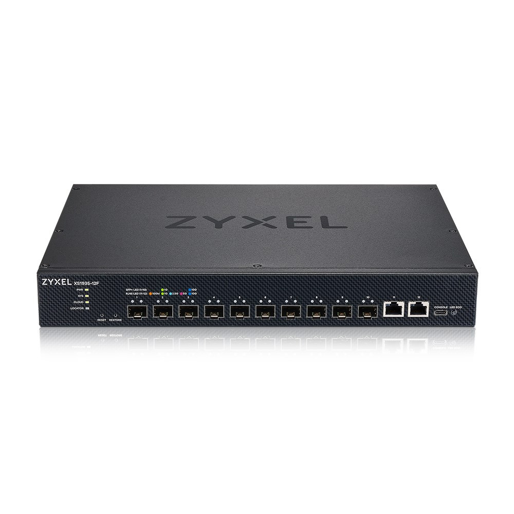 Popis Zyxel XS1930-12F, 10-port 10G Smart Managed Fiber Switch, 2 Multi-Gigabit Ports